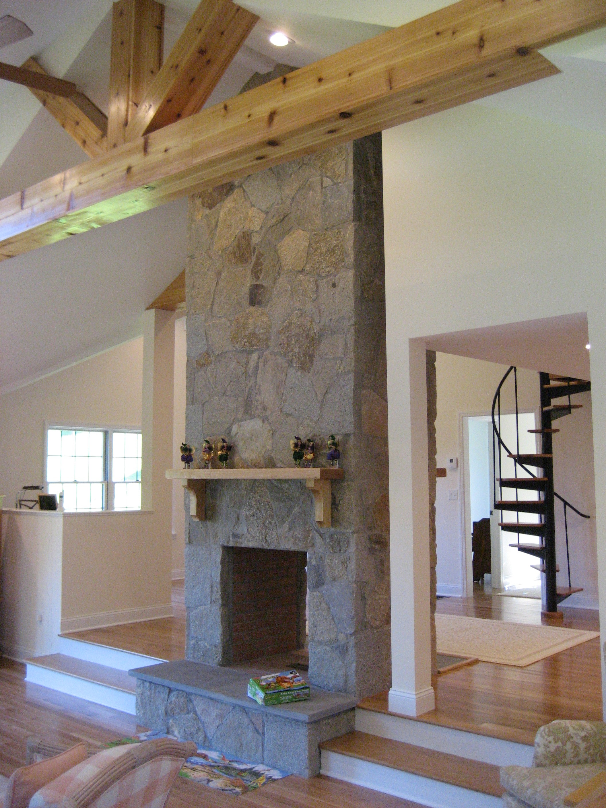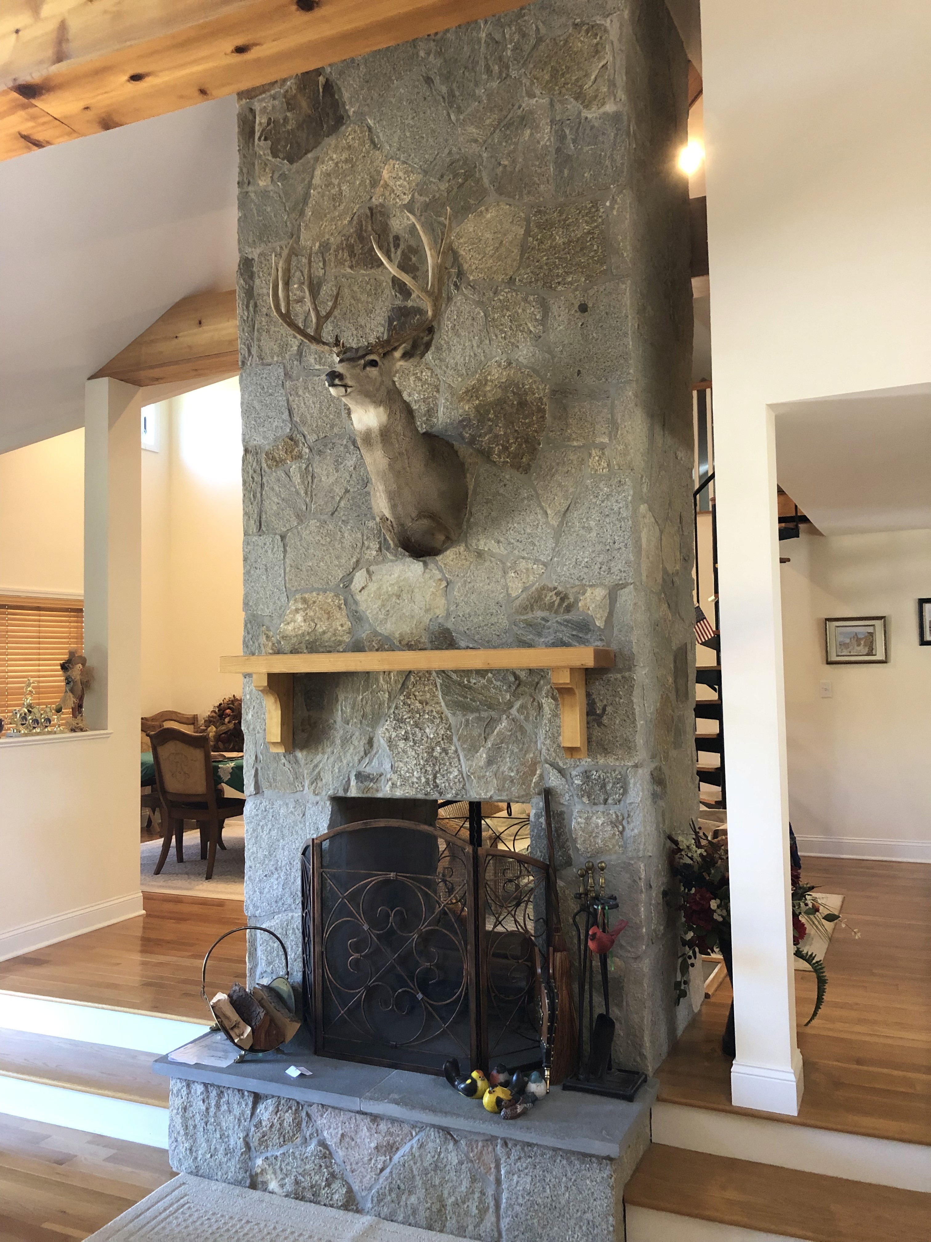 To elevate the character of the home, we incorporated exposed wood beams and vaulted ceilings, adding warmth, texture, and visual interest to key living areas. A custom double-sided fireplace was constructed as both a functional and architectural centerpiece, creating a strong connection between spaces while enhancing comfort and ambiance. These details helped define the home’s identity and bring craftsmanship to the forefront.
