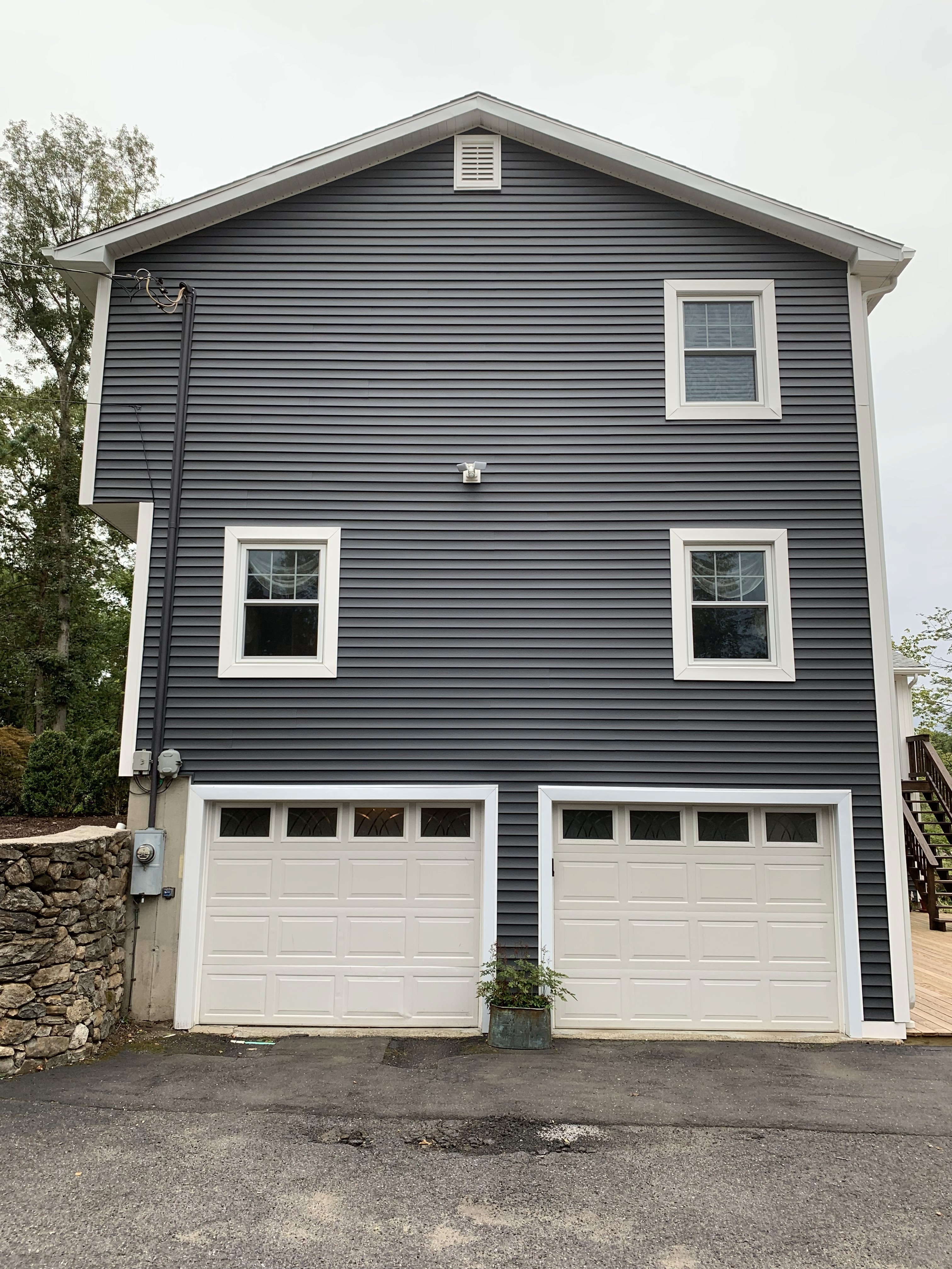As part of the restoration, we resided the entire home with double 4" vinyl siding, significantly improving durability, weather resistance, and overall curb appeal. The siding upgrade created a cohesive, refreshed exterior while providing long-term protection.