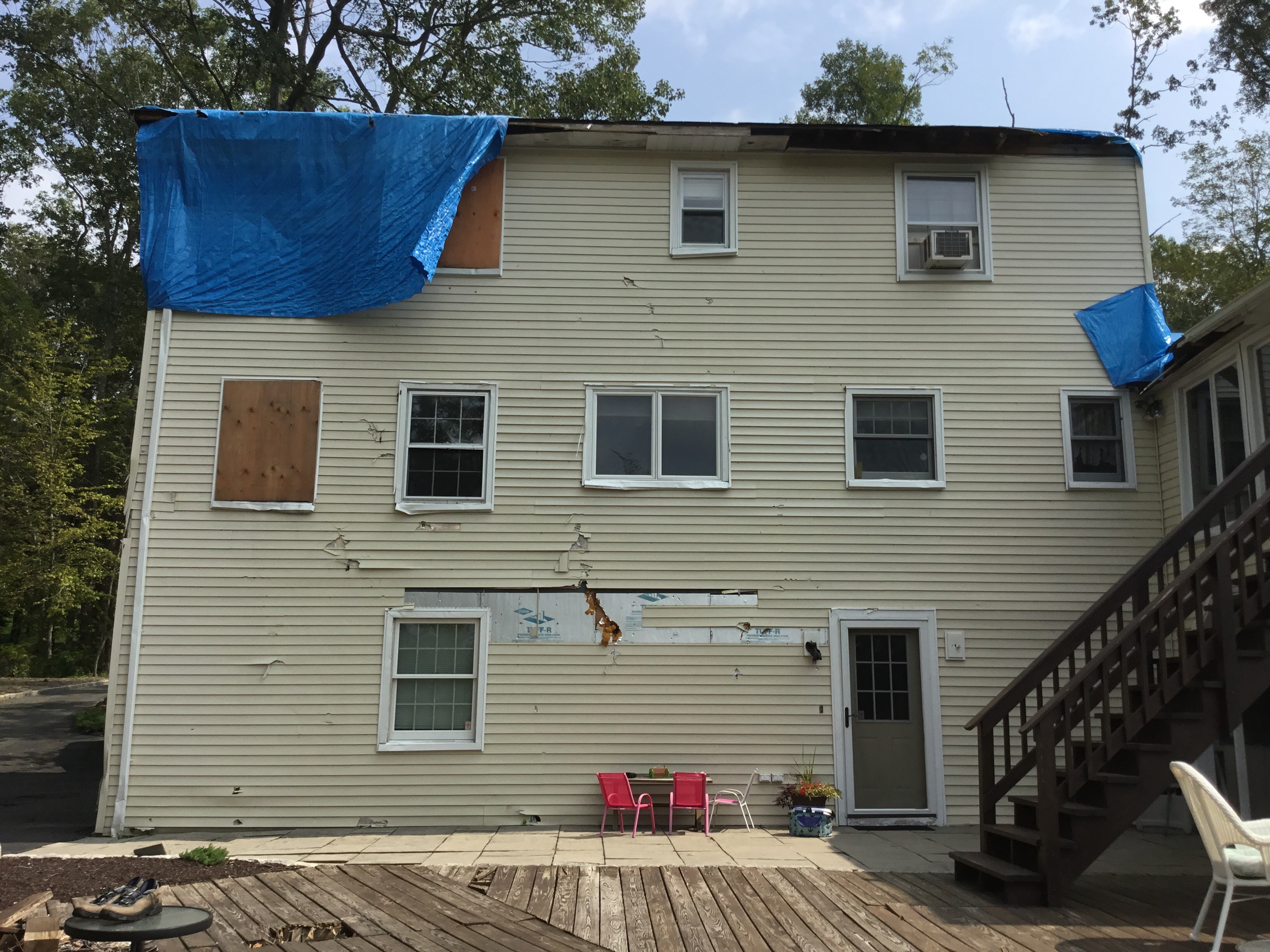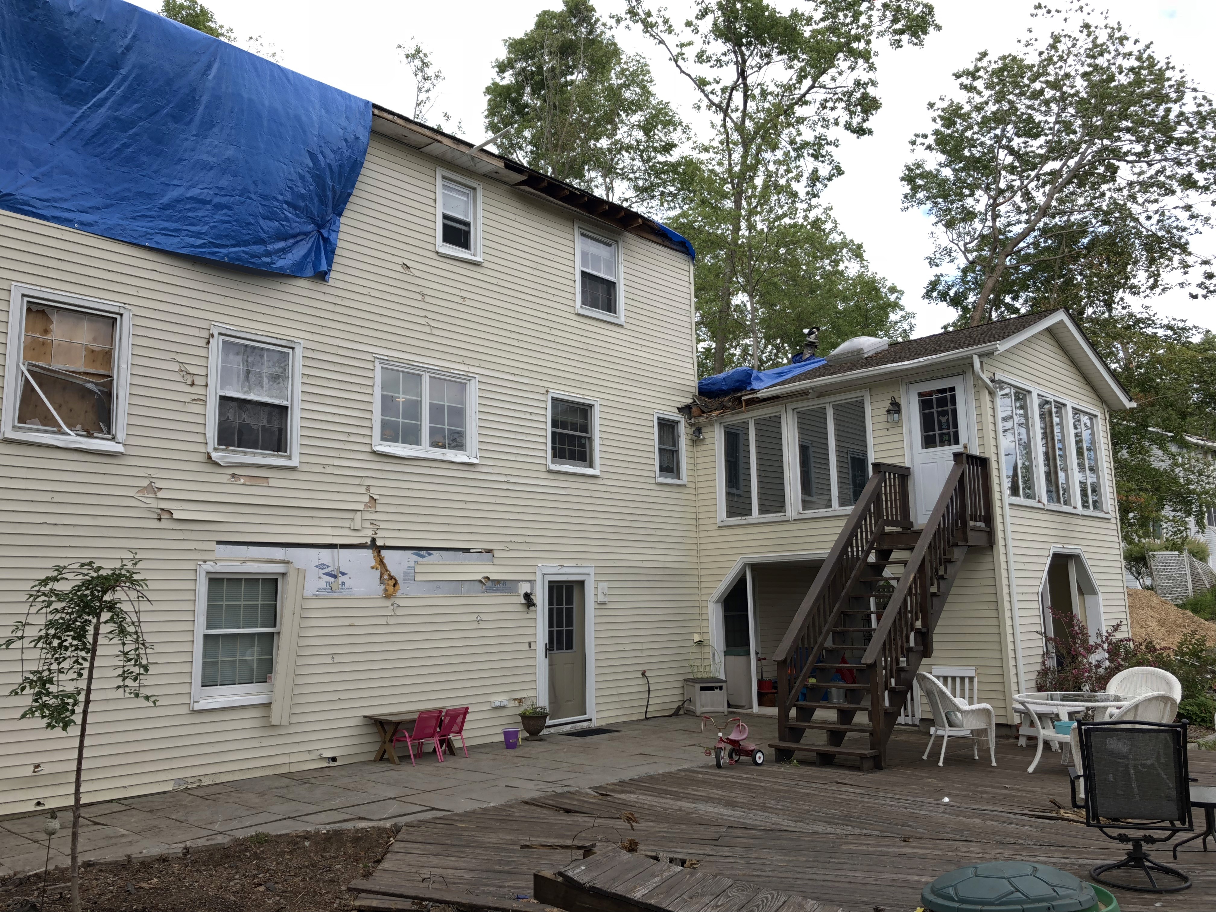 The storm caused extensive damage to the home’s large rear deck. We fully rebuilt the deck, restoring both safety and functionality while creating a strong outdoor space for the homeowners to enjoy.