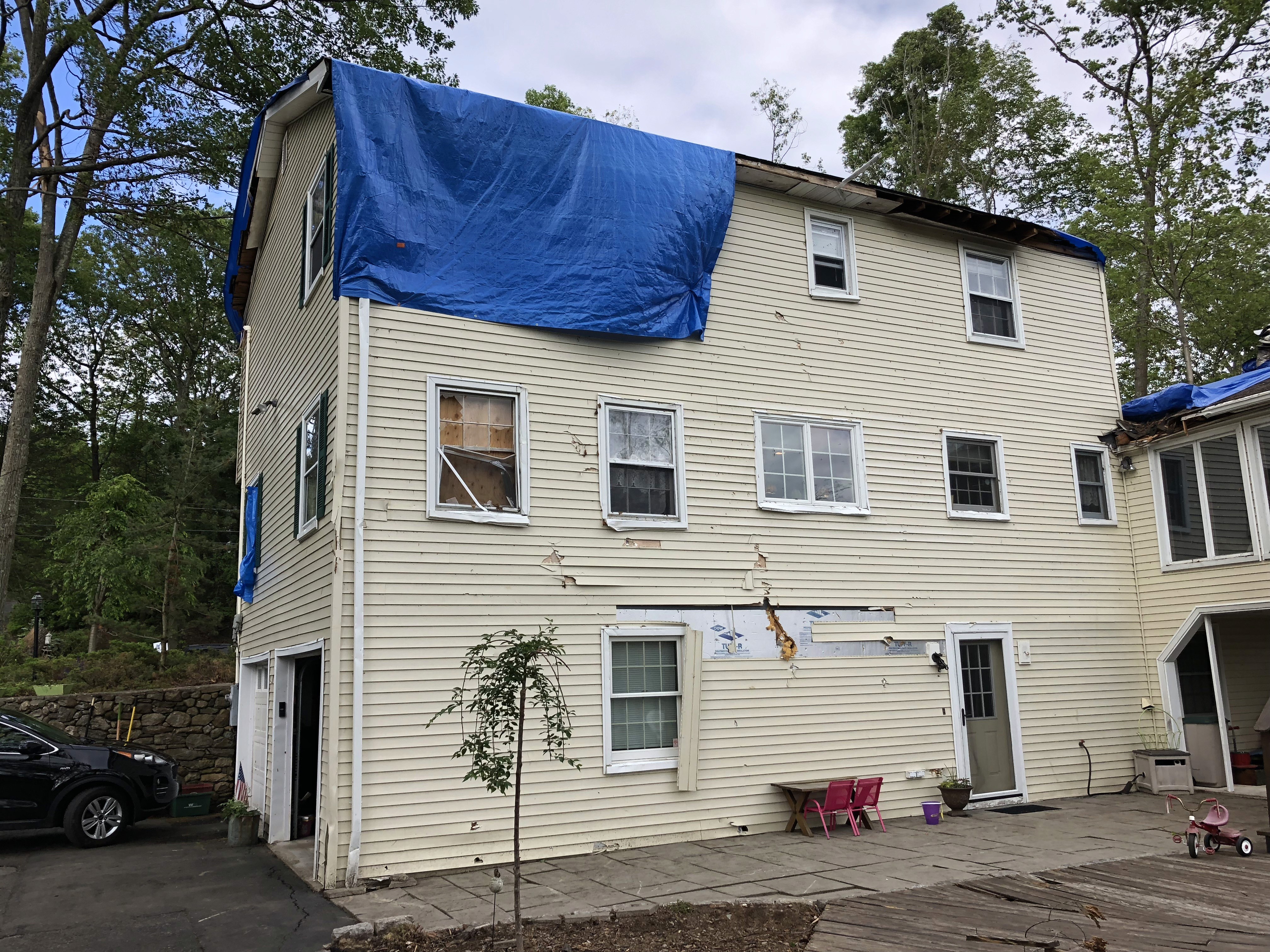 This project highlights our ability to manage severe storm damage restoration, complex structural repairs, and full-scale exterior and interior renovations from start to finish.