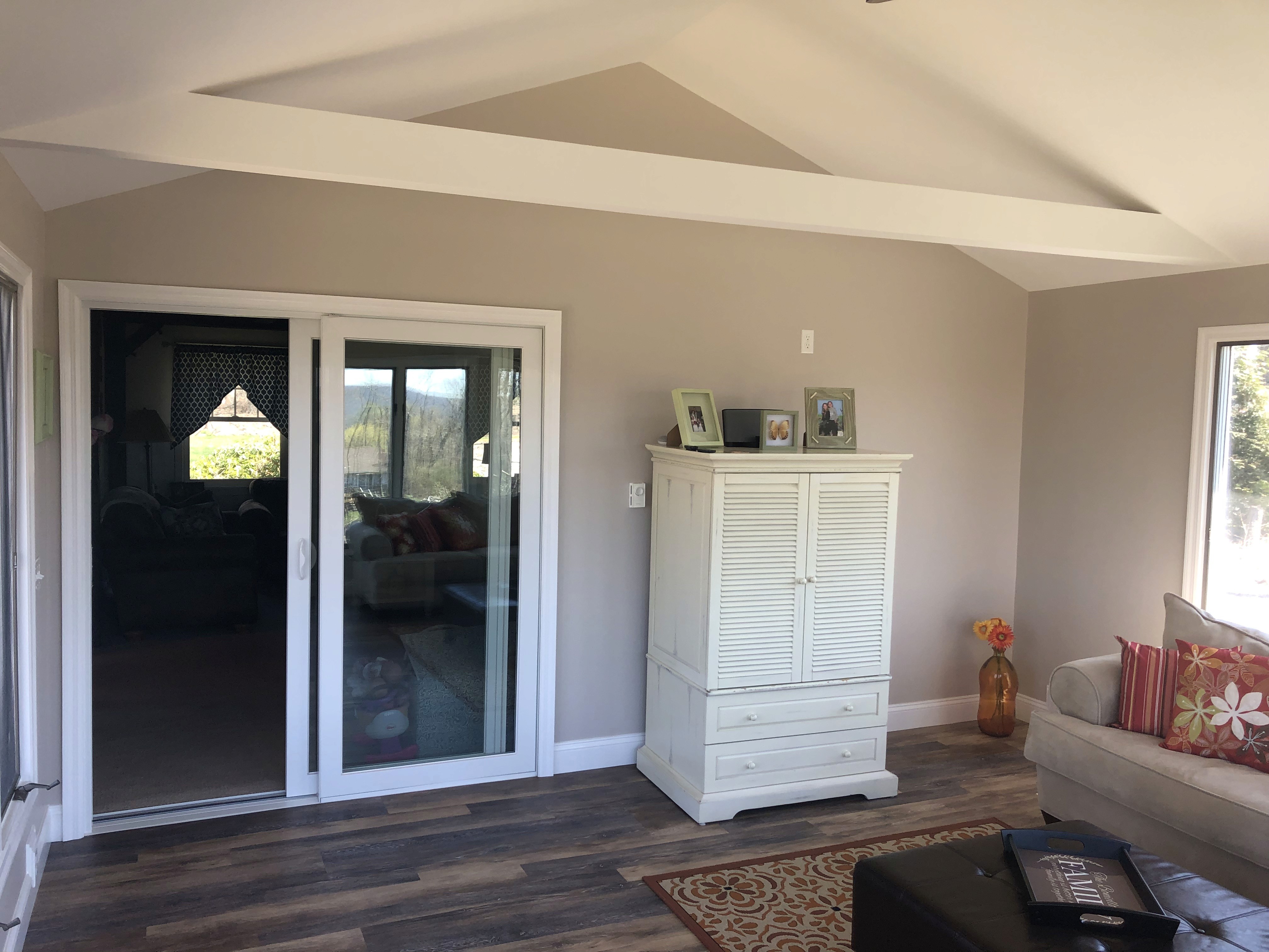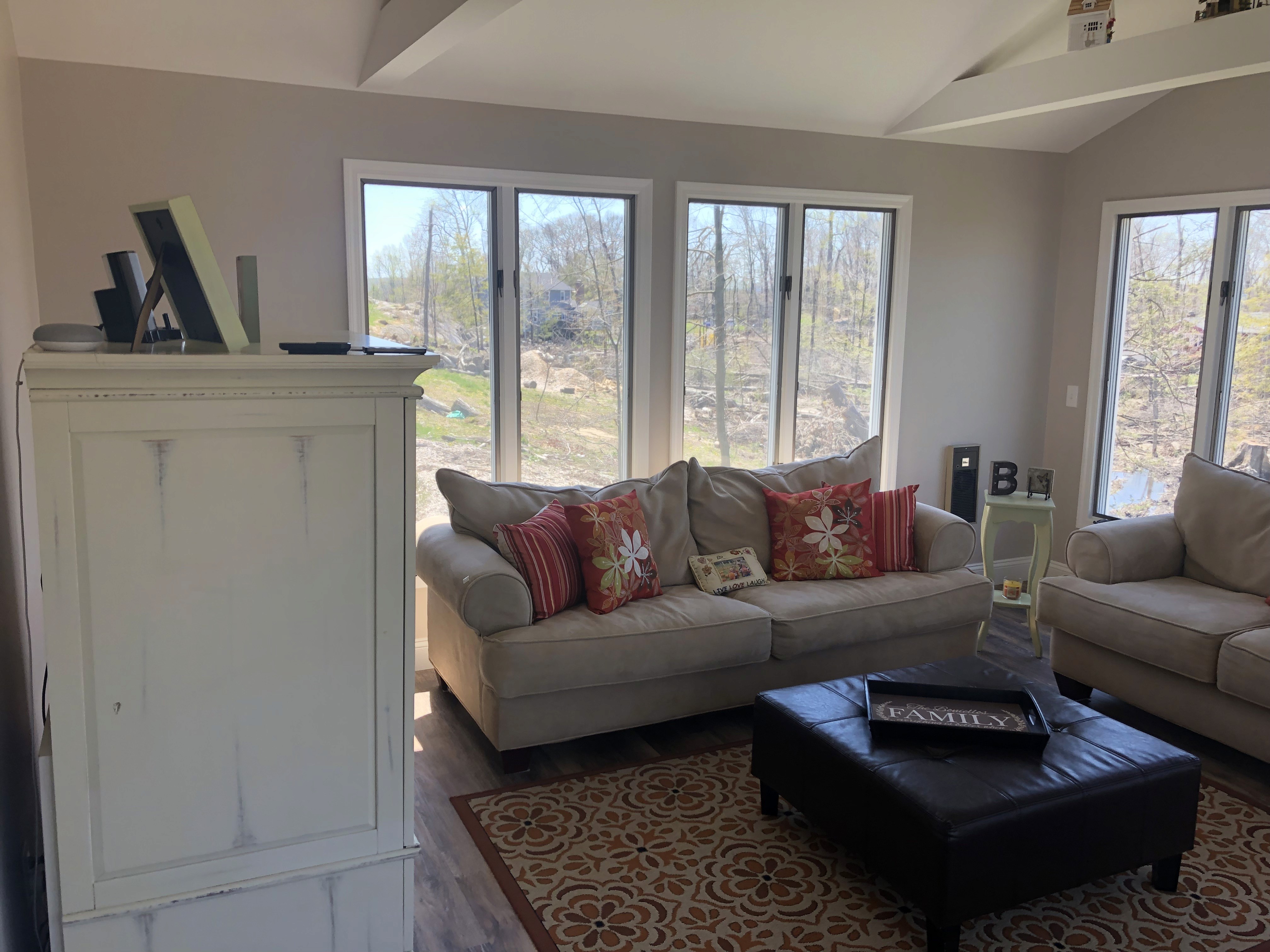 The completed family room is now a warm, comfortable, and functional space that feels brand new while blending naturally with the rest of the home. Combined with the exterior upgrades, roofing, siding, deck reconstruction, and copper chimney flashing, the project resulted in a fully restored home that is stronger, safer, and more resilient than before the storm.