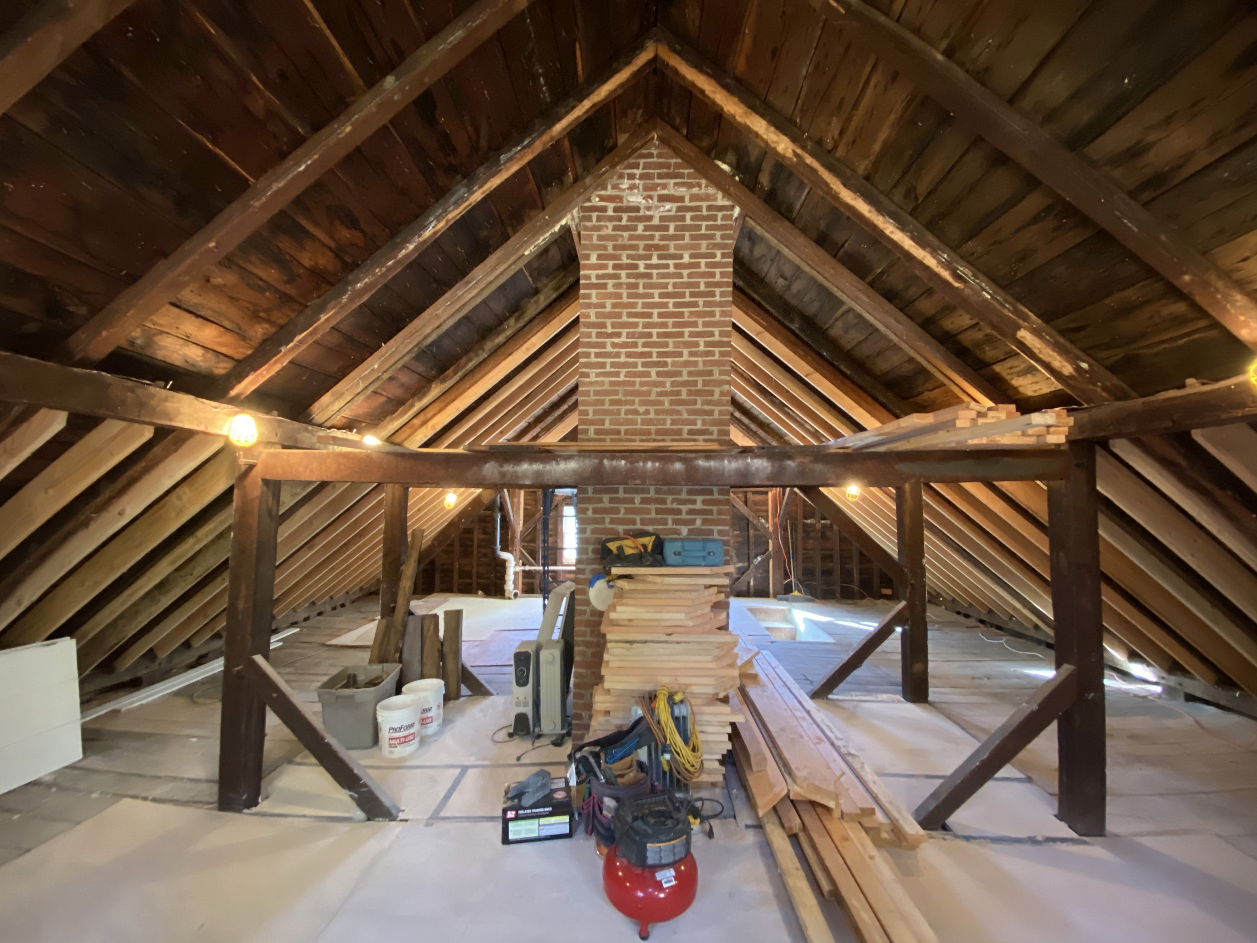 This attic renovation transformed a raw, unused space in a historically significant home into a fully finished living area designed as a warm, imaginative retreat for the homeowners’ children.